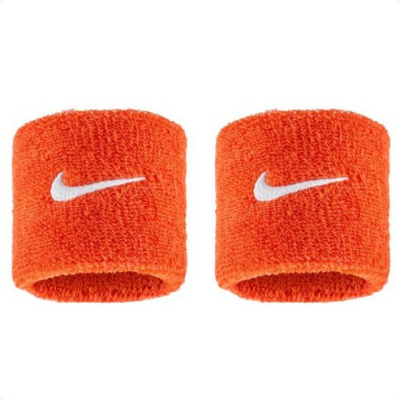 Cartela com 2 unidades de Munhequeiras Nike com 2,5" comprimento (aprox. 6,5cm) em tecido atoalhado e logo Nike bordado.