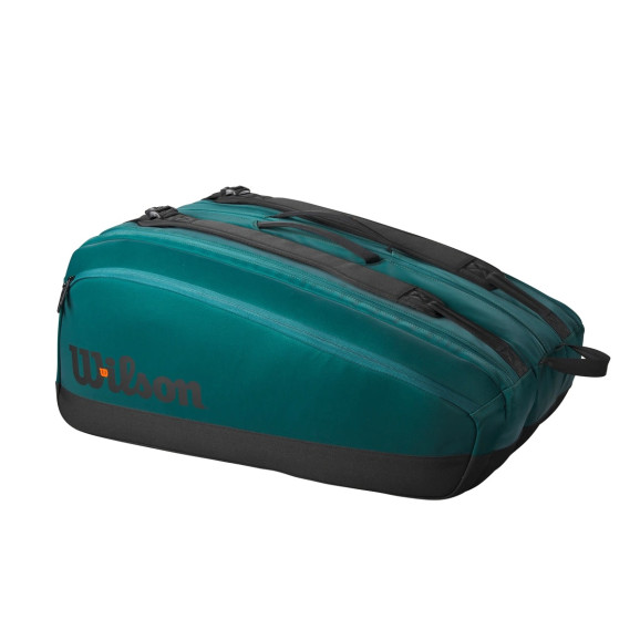 A Raqueteira Blade Super Tour 15 Pack é inspirada no design elegante e dinâmico da raquete Blade V9 e apresenta a mesma cor verde esmeralda. O bolso de raquetes multifuncional é o companheiro definitivo para jogadores de tênis ávidos e treinadores, comportando até 15 raquetes, equipamentos, roupas e outros itens essenciais. Possui três compartimentos principais, sendo dois revestidos com material termo protetor para proteger contra mudanças de temperatura. Há um compartimento ventilado para calçado e bolsos extras nas laterais para armazenamento adicional. Equipado com alças de transporte duráveis e alças de ombro ajustáveis para facilitar o transporte ao viajar para torneios.